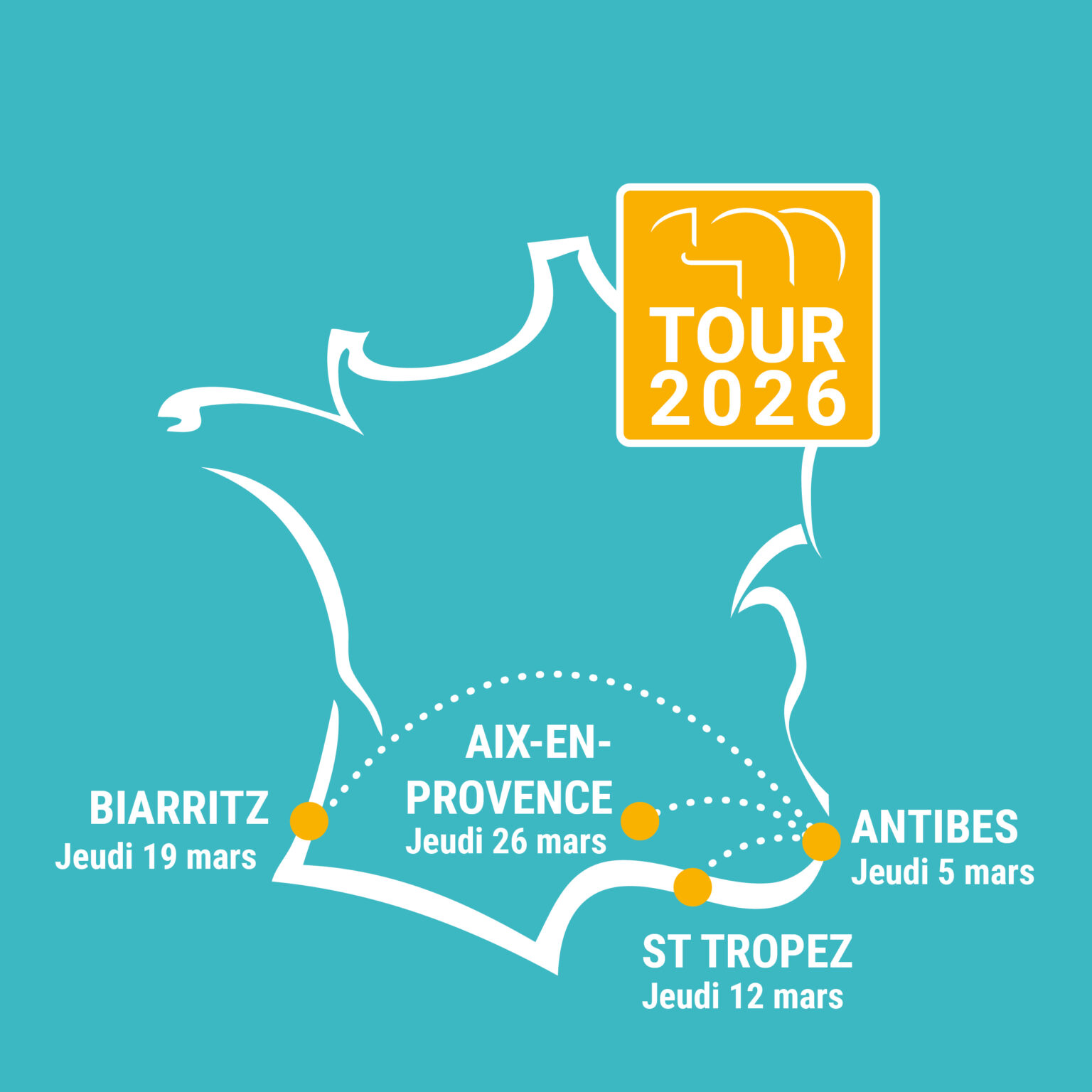 En route pour le CM TOUR 2026 ! Cette année, nous vous accueillons dans 4 destinations emblématiques : Antibes, Saint-Tropez, Biarritz et Aix-en-Provence. Aux côtés de nos partenaires nous vous dévoilerons les nouveautés 2026, dans un cadre privilégié propice aux échanges.